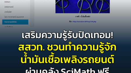 01/04/2026 เสริมความรู้รับปิดเทอม! สสวท. ชวนทำความรู้จักน้ำมันเชื้อเพลิงรถยนต์ ผ่านคลัง SciMath ฟรี! Read More
