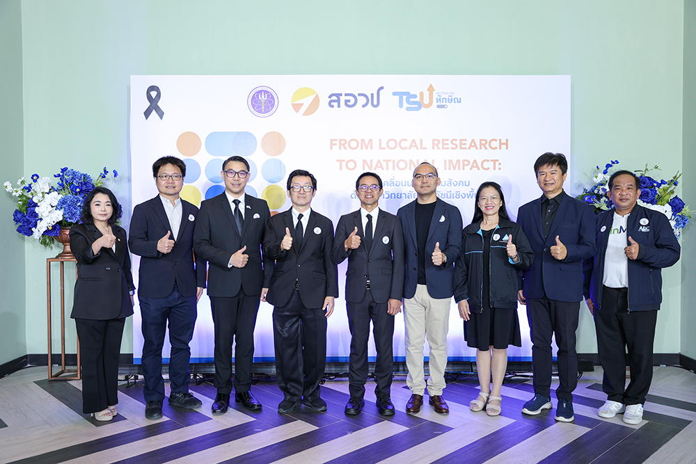 กระทรวงการอุดมศึกษา วิทยาศาสตร์ วิจัยและนวัตกรรม (อว.) โดย สำนักงานสภานโยบายการอุดมศึกษา วิทยาศาสตร์ วิจัยและนวัตกรรมแห่งชาติ (สอวช.) ร่วมกับ มหาวิทยาลัยทักษิณ จัดงานเสวนา “From Local Research to National Impact : ขับเคลื่อนนวัตกรรมทางสังคมด้วยมหาวิทยาลัยและดัชนีเชิงพื้นที่” พร้อมจัดพิธีลงนามบันทึกข้อตกลงความร่วมมือ การพัฒนาและขับเคลื่อนการนำดัชนีนวัตกรรมทางสังคมที่เหมาะสม สำหรับสถาบันอุดมศึกษาไทยไปใช้ประโยชน์ เมื่อวันที่ 17 ธันวาคม 2568 ณ ห้อง Diamond Dome 2 โรงแรม Queensland Hotel Bangkok กรุงเทพมหานคร ซึ่งการจัดงานครั้งนี้มีเป้าหมาย เพื่อร่วมกันออกแบบกลไกการพัฒนาพื้นที่รูปแบบใหม่ โดยใช้ข้อมูลงานวิจัย ชุมชน และดัชนีเชิงพื้นที่ เป็นเครื่องมือสำคัญในการสร้างทางออกที่แม่นยำกว่าวิธีเดิม เพิ่มคุณภาพชีวิตประชาชน สร้างเศรษฐกิจฐานราก และลดความเหลื่อมล้ำอย่างยั่งยืน