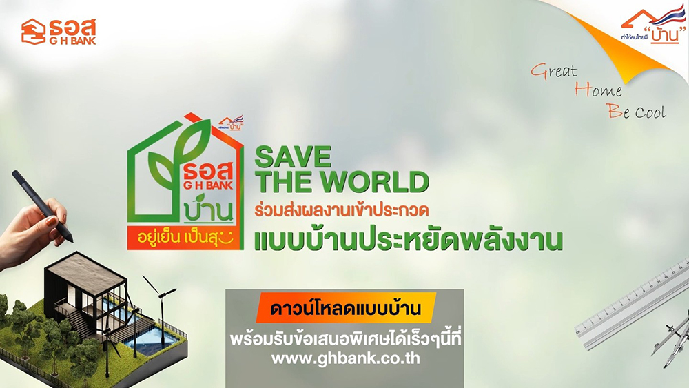 ทั้งนี้ ประชาชนสามารถดาวน์โหลดแบบบ้านประหยัดพลังงานไปใช้ได้ ฟรี!!! ผ่านทาง www.ghbank.co.th เพื่อนำไปปลูกสร้างได้จริง โดยธนาคารพร้อมสนับสนุนสินเชื่อเพื่อปลูกสร้าง อัตราดอกเบี้ยพิเศษ เพื่อเป็นทางเลือกและสนับสนุนให้คนไทยได้มีที่อยู่อาศัยประหยัดพลังงานเป็นของตนเอง และสามารถดูแบบบ้านจากผลงานสร้างสรรค์ที่ชนะการประกวดได้ที่ https://fb.watch/neA-ILu1-v/?mibextid=Nif5oz