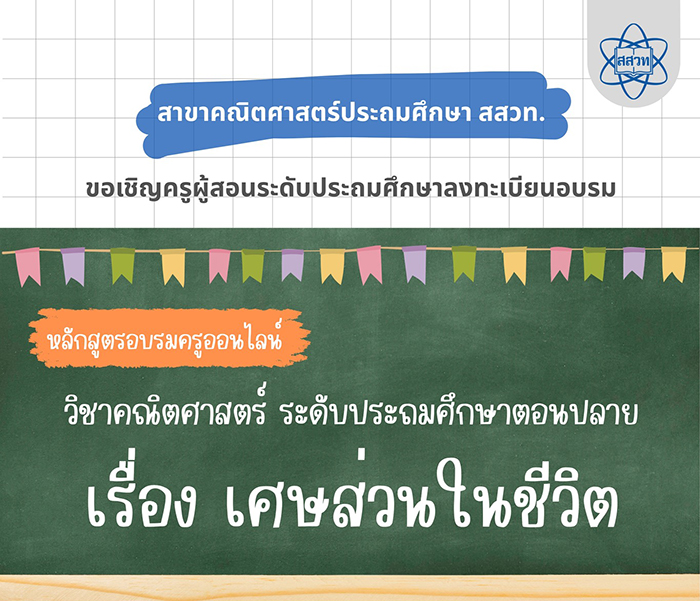 สสวท. ชวนครูประถมปลาย อบรมออนไลน์ฟรี “เศษส่วนในชีวิต” สอนเข้าใจง่าย ใช้ได้จริงในห้องเรียน