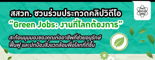 สถาบันส่งเสริมการสอนวิทยาศาสตร์และเทคโนโลยี (สสวท.) ขอเชิญชวนนักเรียนระดับประถมศึกษาถึงมัธยมศึกษาตอนปลายทั่วประเทศ ร่วมสร้างสรรค์คลิปวิดีโอ ความยาว 3–5 นาที ในหัวข้อ “Green Jobs : งานที่โลกต้องการ” เพื่อสะท้อนมุมมองต่อ “งานสีเขียว” ซึ่งเป็นอาชีพสำคัญที่ช่วยอนุรักษ์สิ่งแวดล้อม ลดมลพิษ และส่งเสริมความยั่งยืน
