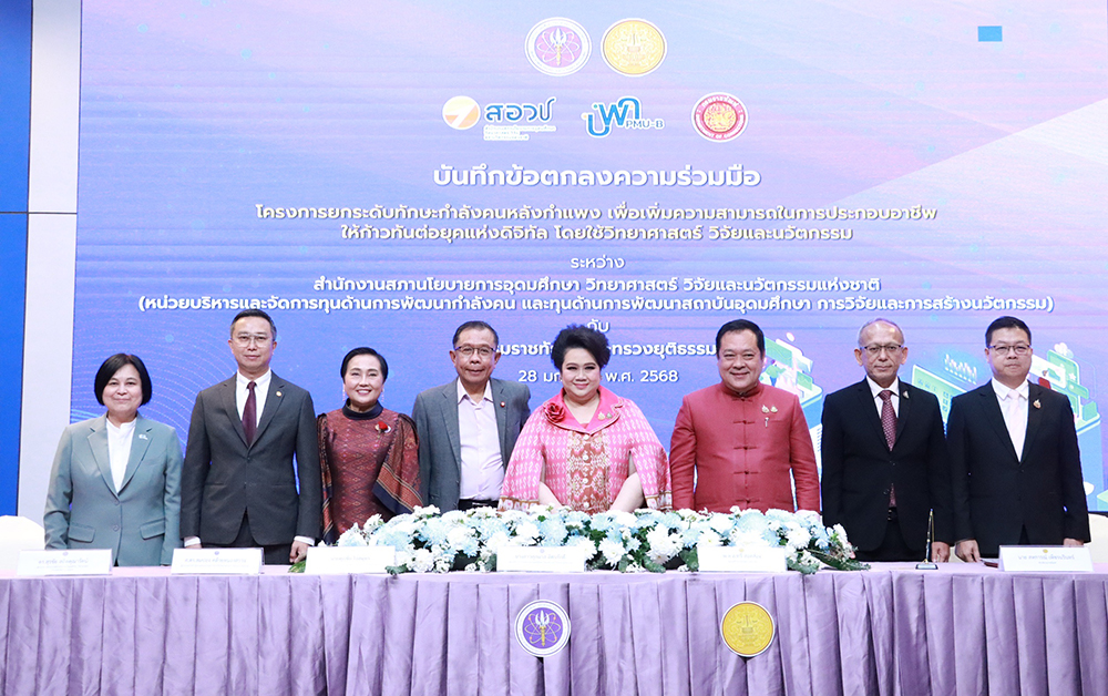 กระทรวงการอุดมศึกษา วิทยาศาสตร์ วิจัยและนวัตกรรม (อว.) โดยหน่วยบริหารและจัดการทุนด้านการพัฒนากําลังคน และทุนด้านการพัฒนาสถาบันอุดมศึกษา การวิจัยและการสร้างนวัตกรรม (บพค.) สํานักงานสภานโยบายการอุดมศึกษา วิทยาศาสตร์ วิจัยและนวัตกรรมแห่งชาติ (สอวช.) จัดพิธีลงนามบันทึกข้อตกลงความร่วมมือ (MOU) กับ กรมราชทัณฑ์ กระทรวงยุติธรรม เพื่อเดินหน้า “โครงการยกระดับทักษะกำลังคนหลังกำแพงเพื่อเพิ่มความสามารถในการประกอบอาชีพให้ก้าวทันต่อยุคแห่งดิจิทัล โดยใช้วิทยาศาสตร์ วิจัยและนวัตกรรม” ซึ่งมีเป้าหมายสำคัญเพื่อพัฒนาทักษะด้านดิจิทัลสำหรับผู้ต้องขัง เพิ่มโอกาสในการเข้าสู่ตลาดแรงงาน และส่งเสริมการประกอบสัมมาอาชีพหลังพ้นโทษ ตั้งเป้าหมายให้เกิดการพัฒนาคนให้มีทักษะแรงงานสูง (High-skill workforce) ทางด้านดิจิทัลให้เท่าทันต่อการเปลี่ยนแปลงของเทคโนโลยี (Technology disruption) จำนวนอย่างน้อย 1,000 คน ภายในปี 2569