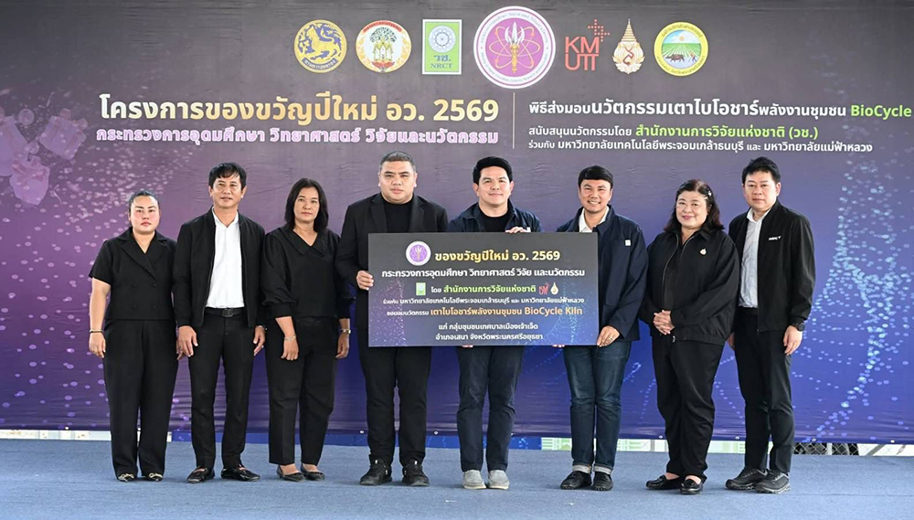 คุณสุรศักดิ์ พันธ์เจริญวรกุล รัฐมนตรีว่าการกระทรวงการอุดมศึกษา วิทยาศาสตร์ วิจัยและนวัตกรรม (อว.) เป็นประธานในพิธีส่งมอบ “นวัตกรรมเตาไบโอชาร์พลังงานชุมชน BioCycle Kiln” ซึ่งเป็นหนึ่งในโครงการของขวัญปีใหม่ อว. 2569 โดยมี ดร.วิภารัตน์ ดีอ่อง ผู้อำนวยการ สำนักงานการวิจัยแห่งชาติ กล่าวสนับสนุนนวัตกรรม, รศ.ดร.อนรรฆ ขันธะชวนะ มหาวิทยาลัยเทคโนโลยีพระจอมเกล้าธนบุรี หัวหน้าโครงการ กล่าวรายงาน พร้อมด้วย ดร.พงศกร มงคลหมู่ นายกองค์การบริหารส่วนตำบลรางจรเข้ และคุณมนต์ชัย พุฒใจกล้า นายกเทศมนตรีเทศบาลเมืองเจ้าเจ็ด จ.พระนครศรีอยุธยา กล่าวขอบคุณ โดยมีผู้บริหารหน่วยงานในพื้นที่ ทีมนักวิจัย ผู้นำท้องถิ่น และประชาชนในพื้นที่ร่วมให้การต้อนรับ ณ องค์การบริหารส่วนตำบลรางจรเข้ จ.พระนครศรีอยุธยา เมื่อวันที่ 14 กุมภาพันธ์ 2569